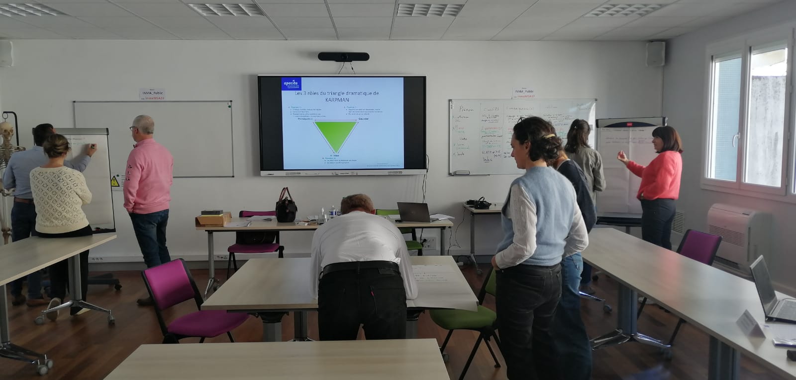 « Ce n’était pas du tout scolaire. Il y avait beaucoup de pratiques, de mises en situation concrètes et surtout beaucoup d’interactions entre les participants » témoigne Océane Turostowski, responsable pédagogique aux Haras de Jardy, qui a suivi la formation avec une collègue. Cette diversité des profils est une richesse : « Même si on vient de milieux très différents, on se rend compte qu’on rencontre souvent les mêmes problématiques » ajoute-t-elle